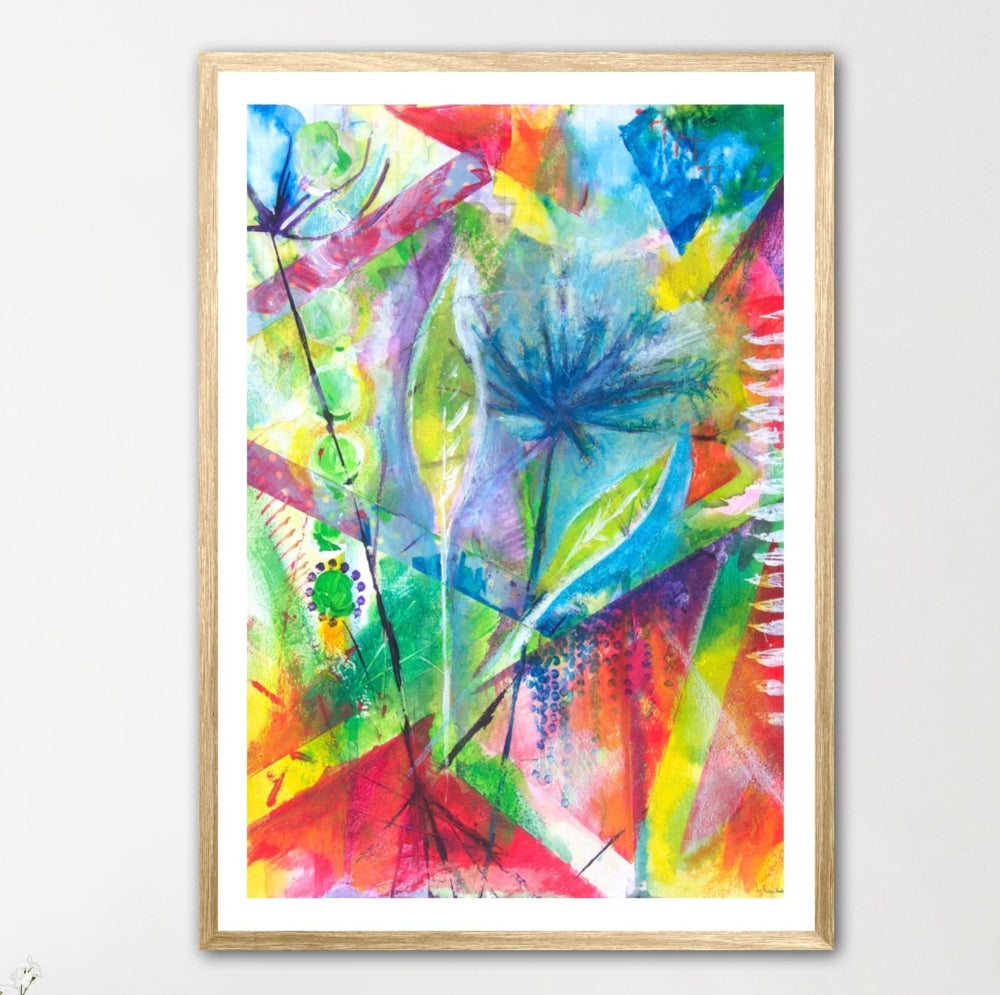This colourful giclee fine art print has been taken from my original mixed media painting called Flourish. The name was chosen to reflect the fact that through immersing ourselves in the natural world our souls can soar & flourish.